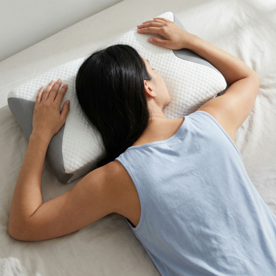 L’Oreiller Sameo™ combine une ergonomie cervicale + une mousse mémoire haute densité pour :